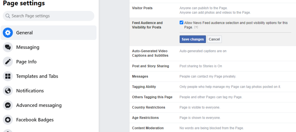 ამისათვის, ეწვიეთ გვერდს. გადადით Settings (პარამეტრები) განყოფილებაში. აირჩიეთ General და შემდეგ Feed Audience and Visibility for Posts და მონიშნეთ ოფცია.